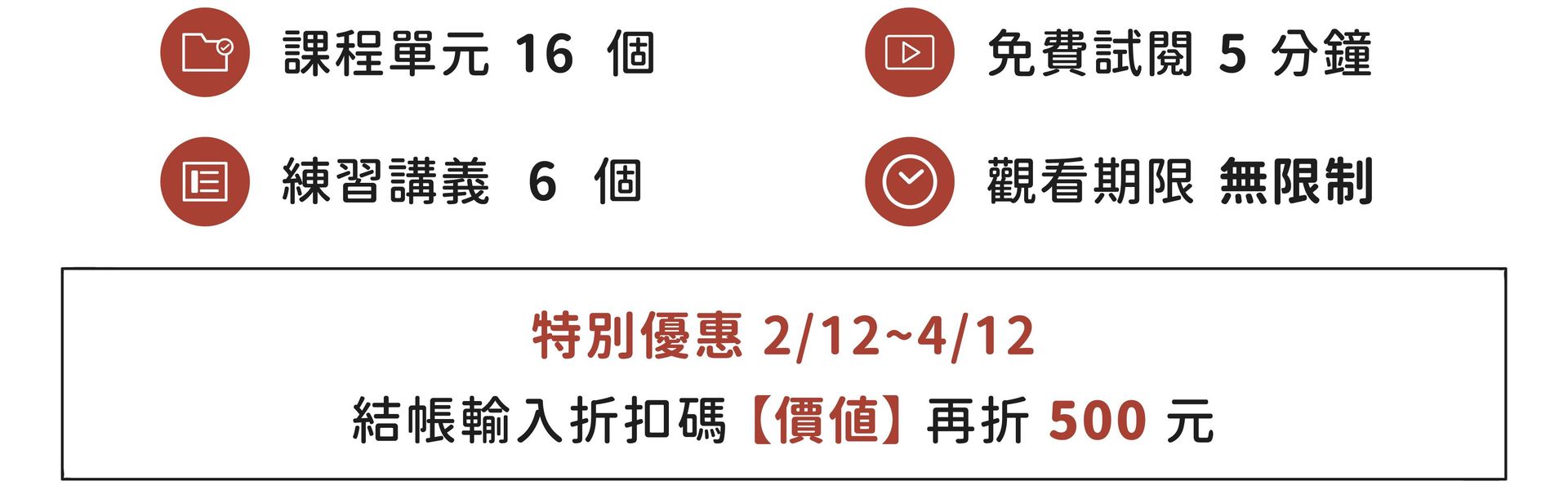 本堂課沒有使用期限,購買後可無限次觀看,如後續又增加新的章節或單元,都可以免費獲得學習資格。若未來該網站結束運營,也會將所有課程內容寄件至學員的信箱,保障您的權益。